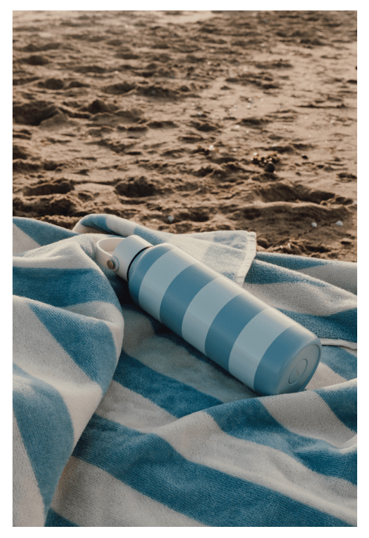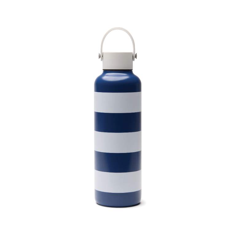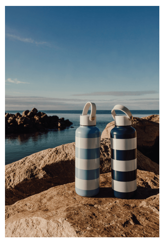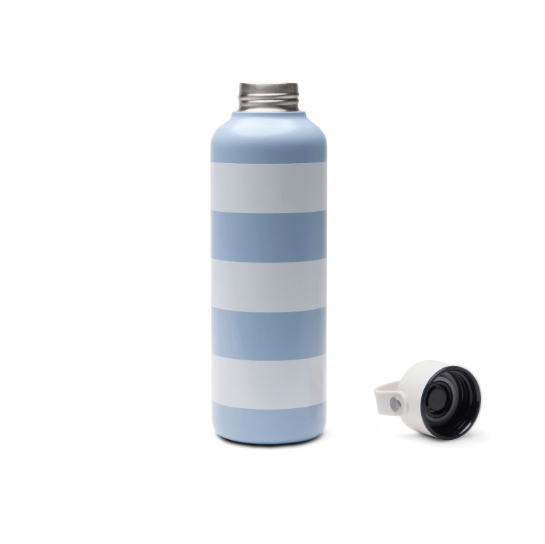 Ova vakuumski izolirana bočica zapremnine 600 ml izrađena je od RCS certificiranog recikliranog nehrđajućeg čelika. Dolazi s klasičnim dvobojnim prugastim uzorkom i elegantnom bijelom silikonskom ručkom.