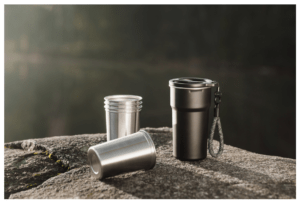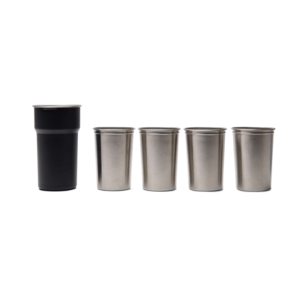 Podijelite avanturu uz ovaj praktični set od 4 čaše izrađen od recikliranog nehrđajućeg čelika. Četiri čaše zapremnine 250 ml smještene su unutar jedne čaše od 450 ml s praktičnom ručkom za nošenje, što set čini kompaktim i jednostavnim za prenošenje. Pametno rješenje za zajedničko uživanje u piću, kamo god vas put odvede.