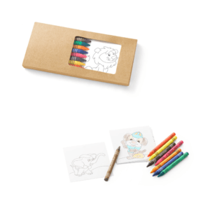 Set za bojenje isporučen u kartonskoj kutiji. Ovaj set uključuje 8 voštanih bojica i 8 karata sa crtežima za bojenje. 180 x 90 x 10 mm