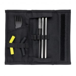 Pakirano u prikladnu vrećicu s čičak zatvaračem. Siguran u perilici posuđa. Izvana 100% 600D poliester, iznutra 100% 210D poliester. Bez PVC-a.
