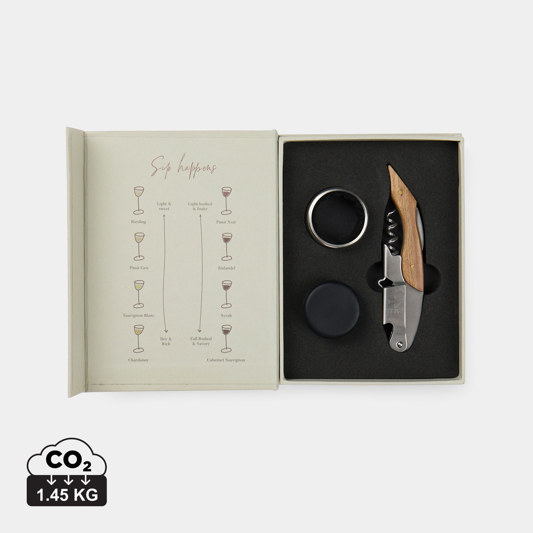 Krenite na sofisticirano putovanje s kompletom Priča o vinu, elegantno upakiranom u poklon kutiju koja podsjeća na klasičnu knjigu. Ovaj set uključuje konobarski vadičep, silikonski poklopac boce kako bi vaše vino duže ostalo svježim i čep za točenje bez kapanja. Jedinstveno pakiranje ne samo da štiti vaš alat, već priča i zadivljujuću priču o vinu, što ga čini savršenim poklonom za vinske entuzijaste. Poklon kutija je izrađena od FSC® certificiranog papira.
