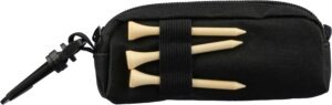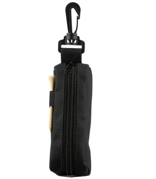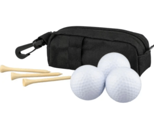 rPET golf set u torbici s patentnim zatvaračem i PP karabinerom, koji sadrži 3 vježbovne golf loptice i 3 golf tee-a od bukovog drva. Idealan za promotivnu upotrebu i vježbanje početnog udarca. Uključuje rPET oznaku.
