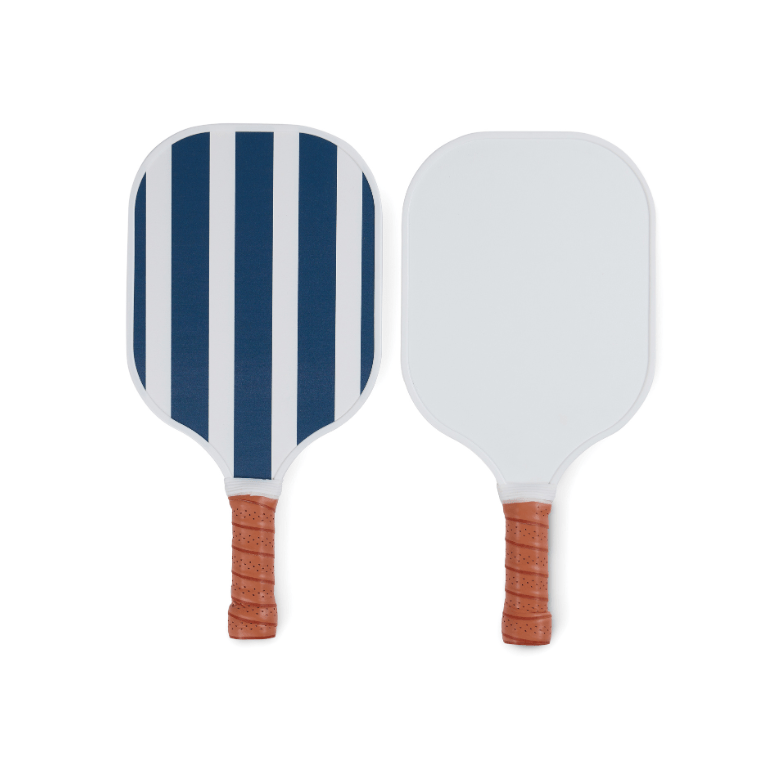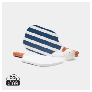 Uživajte u danu uz bazen, u parku ili na plaži uz ovaj pickleball set. Set uključuje dva reketa i jednu lopticu. Reketi su izrađeni od FSC® certificirane šperploče, s klasičnim dvobojnim prugastim dizajnom s jedne strane i čistom bijelom završnom obradom s druge strane. Drška je izrađena od ugodnog PU materijala za siguran hvat i profinjen osjećaj u ruci. Uključen je i letak s uputama. Ova igra namijenjena je vježbanju i zabavi te je prikladna za sve uzraste.