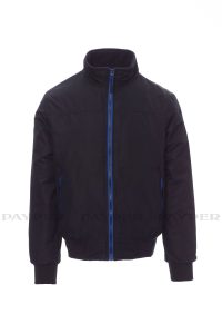 Jakna s elastičnim rebrastim pojasom i manžetama, kontrastnim patentnim zatvaračem, dva vanjska džepa sa skrivenim patentnim zatvaračem.