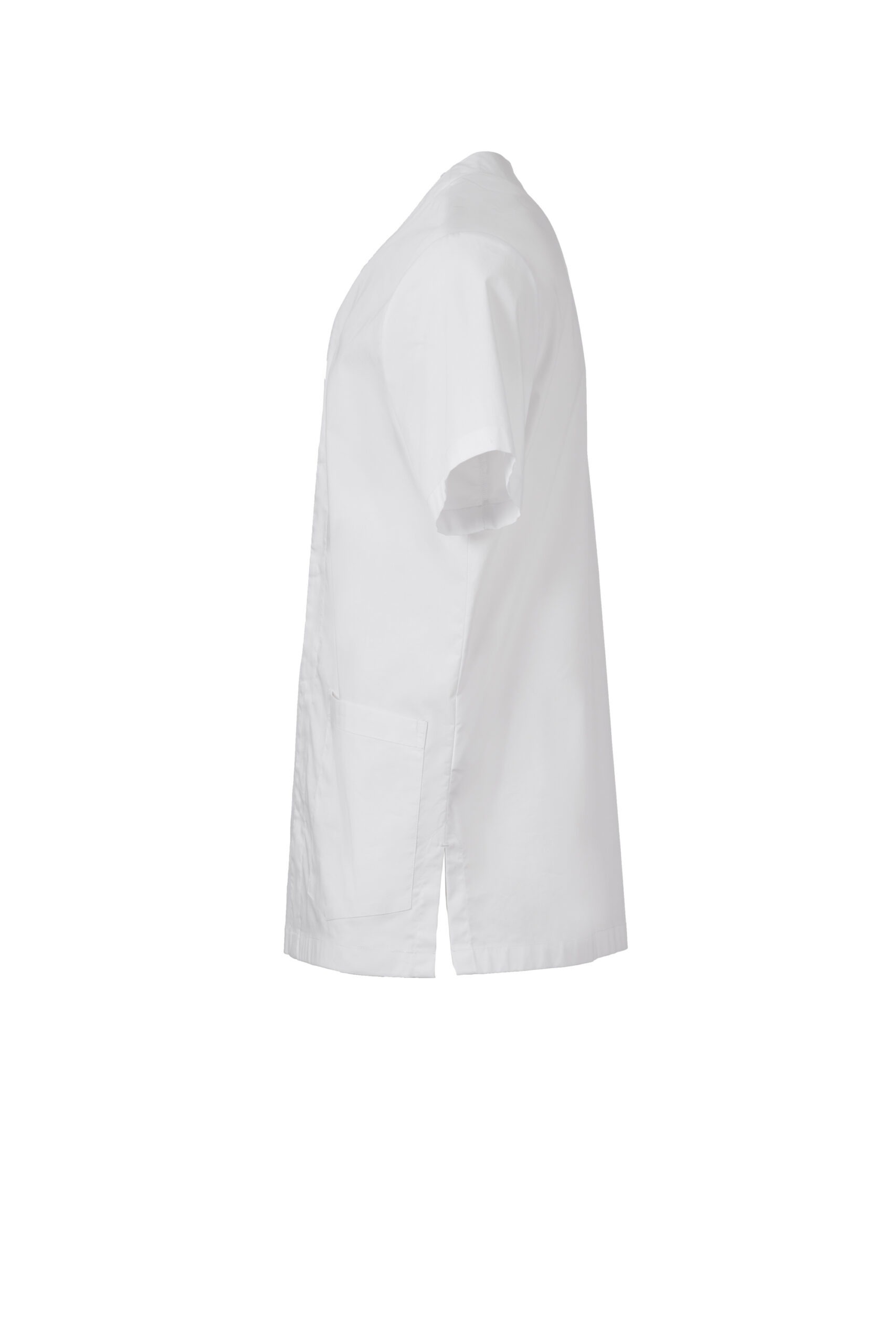 Muški radni kaput s kratkim rukavima i V-izrezom, izrađen od pamučnog popelina, poliestera i Lycra® T400®, s izvrsnim elastičnim i prozračnim svojstvima. Skriveno kopčanje. Tri velika našivena džepa: jedan na prsima s pretincem za olovku; dva donja, od kojih jedan s prepoznatljivim Payper propelerom izvezenim u tonu tkanine i unutarnjim džepom za mobilni telefon. Bočni prorezi radi lakšeg kretanja. Glatka stražnja strana za uredniji izgled.