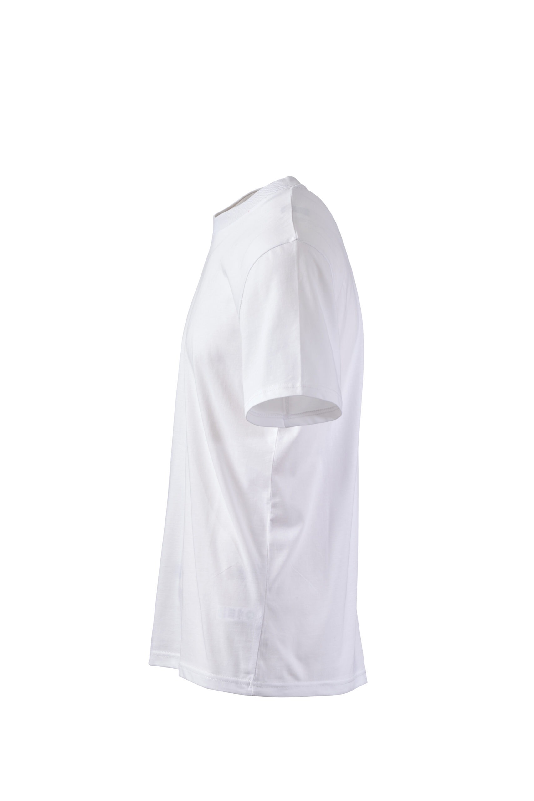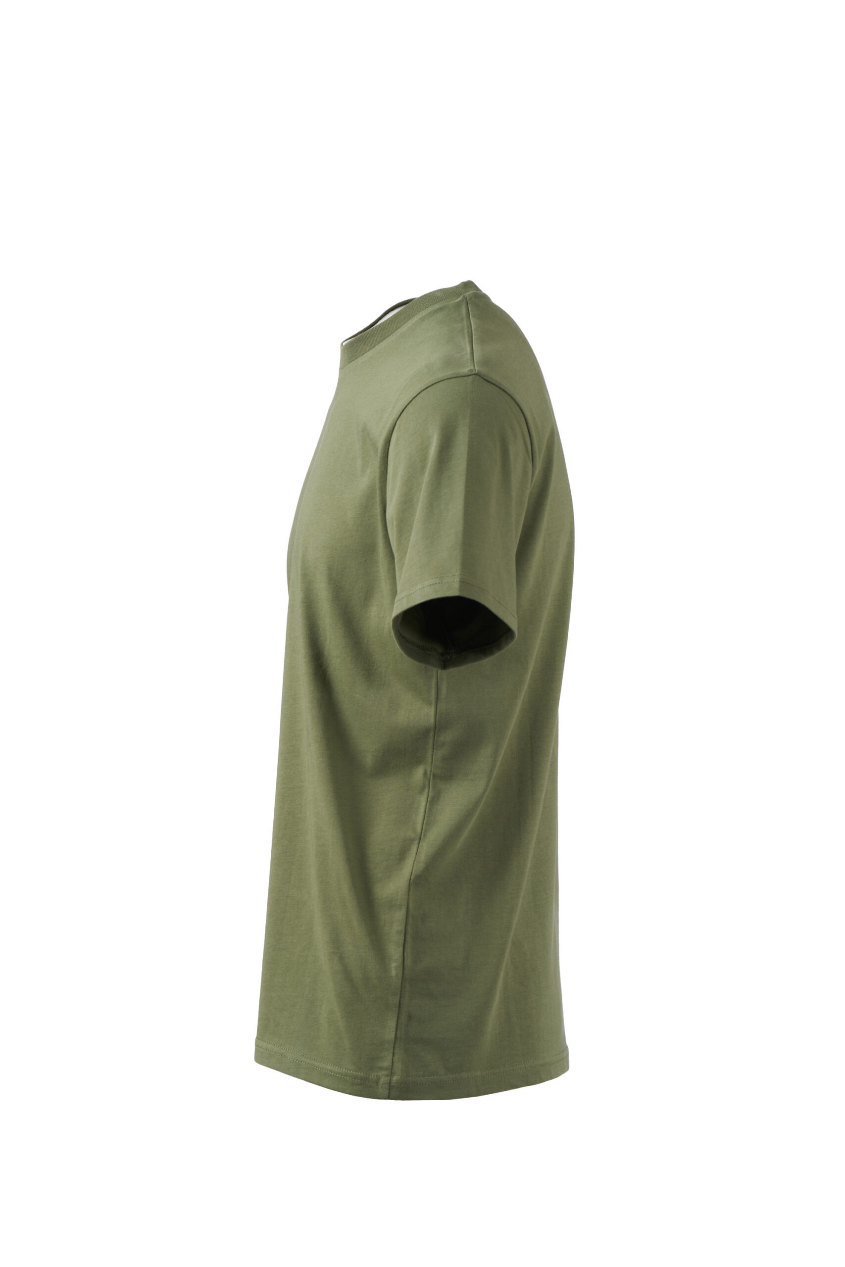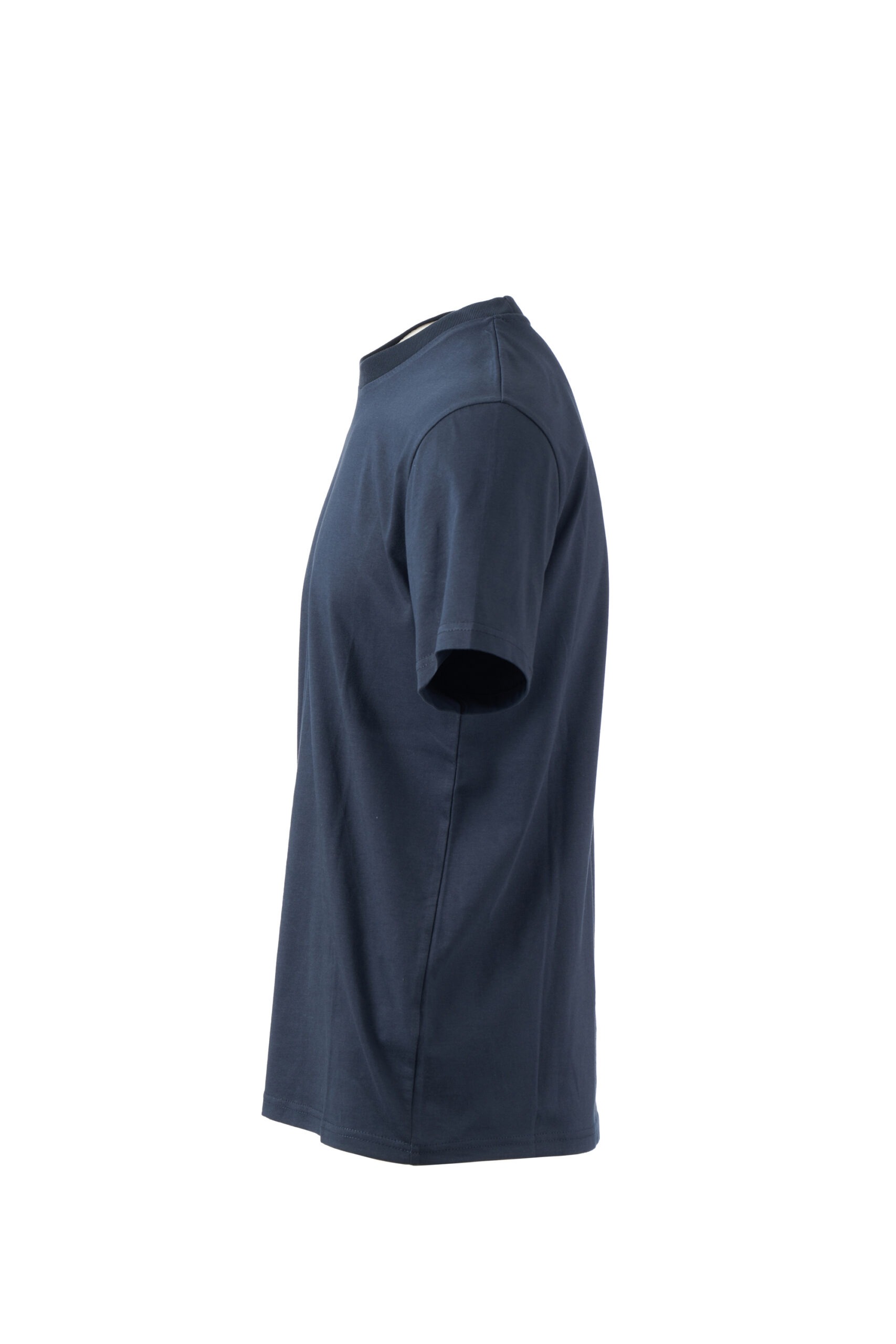 Muška majica kratkih rukava izrađena od 100% GOTS certificiranog organskog pamuka. Model ima rebrasti ovratnik širine 2 cm i bočne šavove. Tkanina je jersey strukture, lagana i ugodna za nošenje, s težinom od 175 g/m².