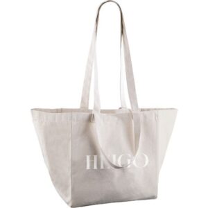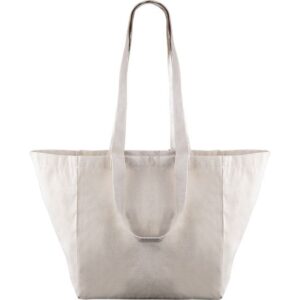 Torba za plažu s dvostrukom kratkom i dugom ručkom, izrađena od prirodnog platna 220 gr/m² koja uključuje vezicu za zatvaranje.