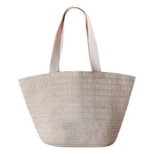 Košara za plažu od papira s ručkama i vanjskim džepom od pamuka. Veličina džepa: 17 x 13 cm.