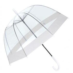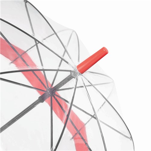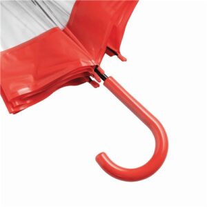 Prozirna kupola od POE materijala s obojenim rubom daje moderan izgled i dobru vidljivost, dok zatvaranje pomoću tipke olakšava upotrebu. Idealna kombinacija stila i funkcionalnosti za svakodnevnu zaštitu od kiše.