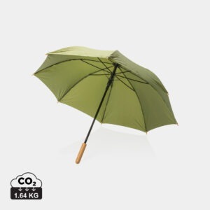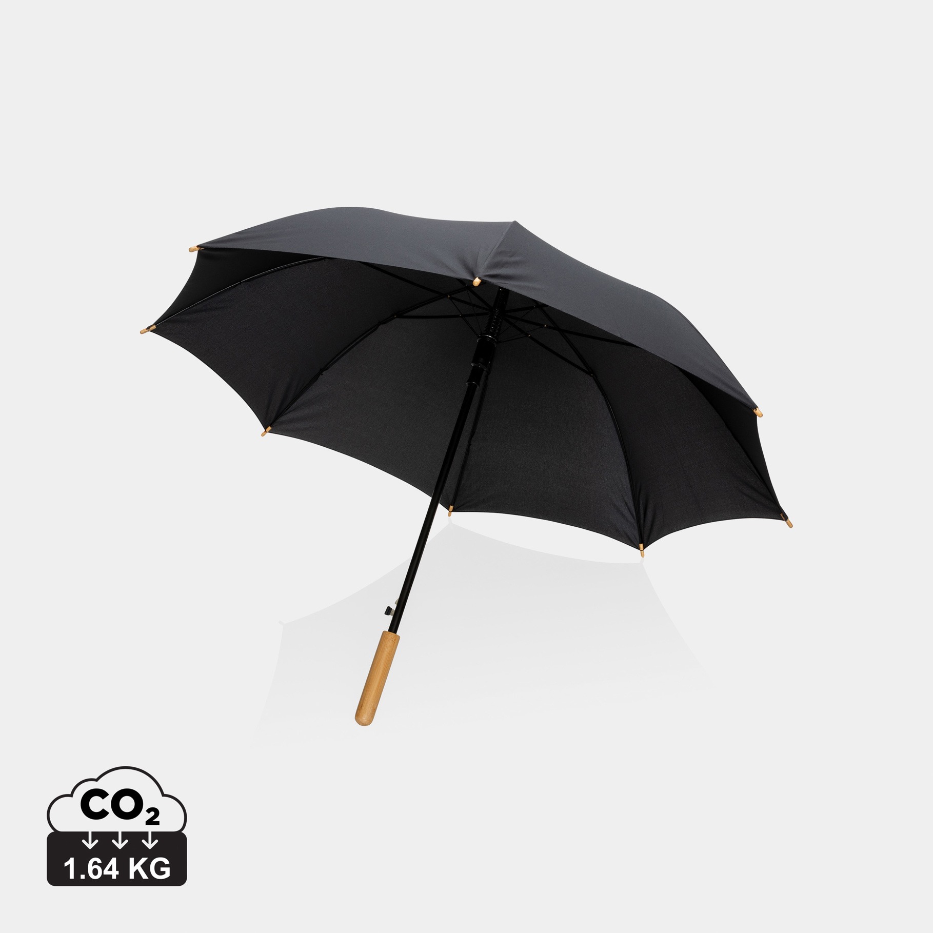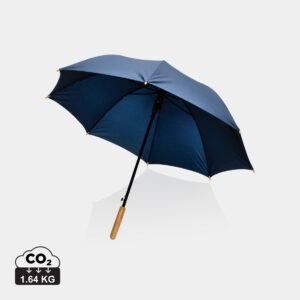Ovaj Impact kišobran izrađen je od 190T RPET pongee s AWARE™ tracerom. Štedite vodu i koristite originalne reciklirane tkanine. S naglaskom na vodu, 2% prihoda od svakog prodanog proizvoda Impacta bit će donirano Water.org. Metalni okvir, rebra od fiberglasa i elegantna ručka od bambusa.