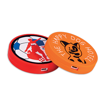 PVC bežični punjač okruglog oblika s personaliziranim dizajnom na jednoj strani. Min. veličina: 75x75x15,5 mm / maks. veličina: 140x80x15,5 mm. Ulaz: DC 5V/2A (maks.). Izlaz: DC 5V/1A (maks.).