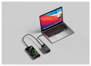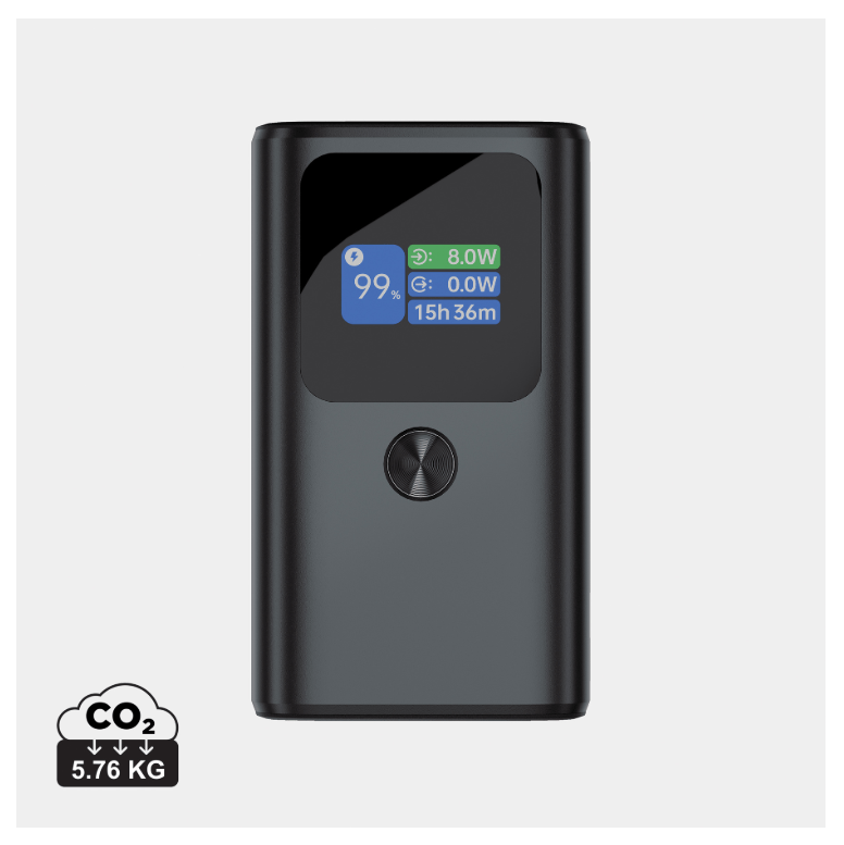 S tri izlazna priključka — dva USB-C i jednim USB-A — omogućuje impresivnu snagu do 55 W, dovoljnu za brzo punjenje pametnih telefona, tableta pa čak i prijenosnih računala te MacBook uređaja punom brzinom. Izrađen od izdržljivog aluminija, powerbank spaja vrhunski izgled i robusnu izradu, čineći ga elegantnim i pouzdanim dodatkom suvremenom načinu života.